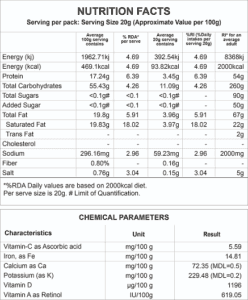 Split Moong Dal, Edible Vegetable Oil(Ground Nut, Palmolein, Cotton Seed, Corn), Spices & Condiments {Black Salt, Black Pepper Powder, Asafoetida}, Iodized Salt.